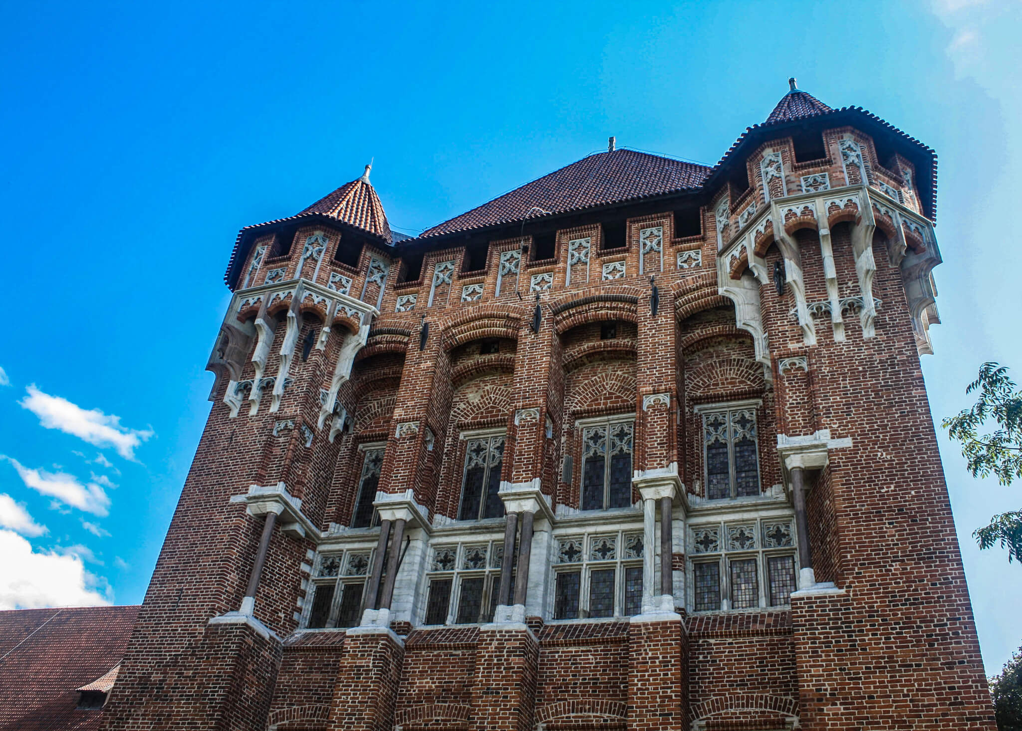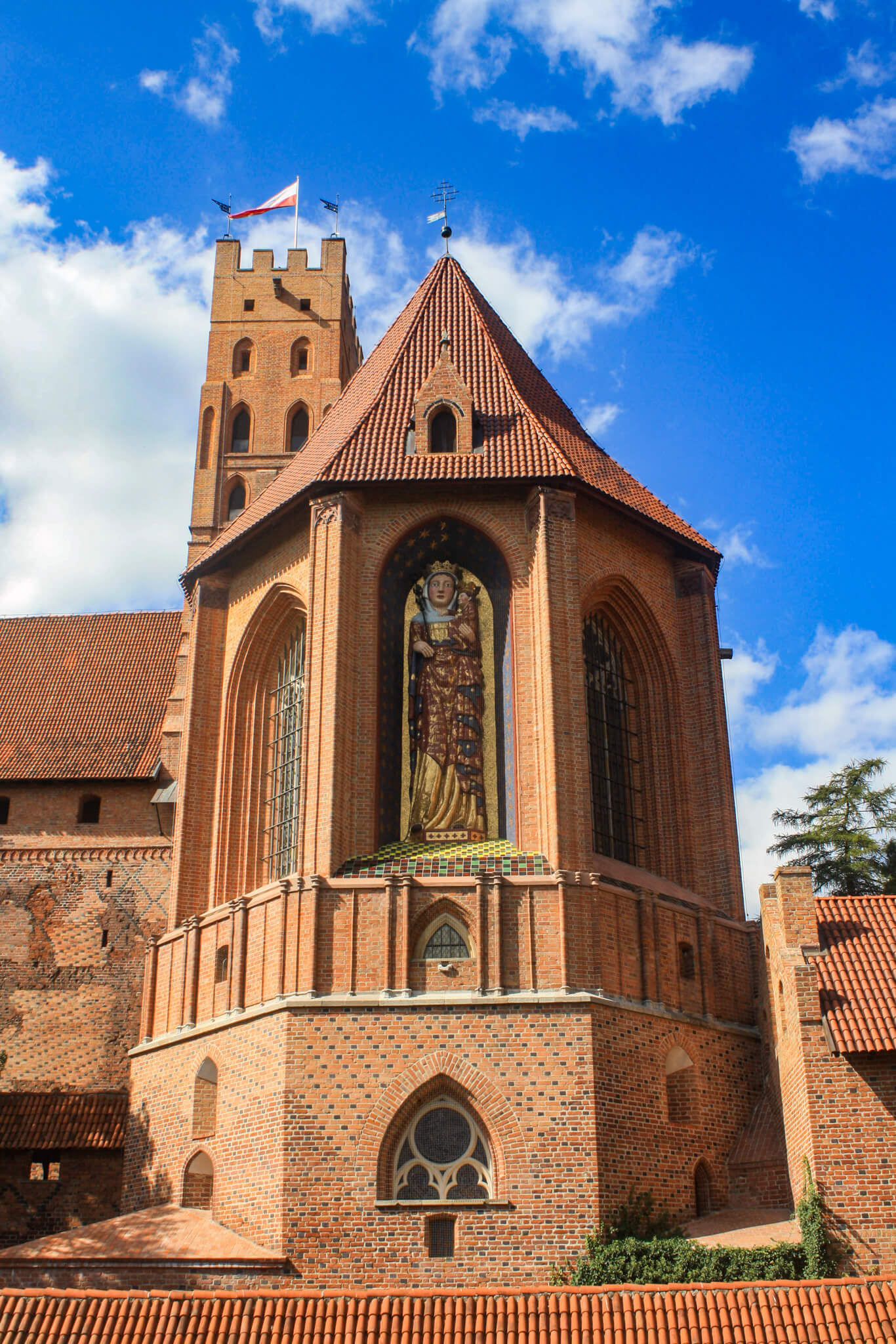 A 15-minute walk brought me to the city’s main attraction: Malbork Castle. The massive castle loomed in front of me, with its crenellated walls and round and octagonal towers with lancet windows. I crossed a former drawbridge over the moat, filled in and grassed, and through the entrance gate. The castle unfolded seemingly forever to my left, row upon row of brick, topped by tiled roofs. This was clearly built to last—but it almost didn’t.
