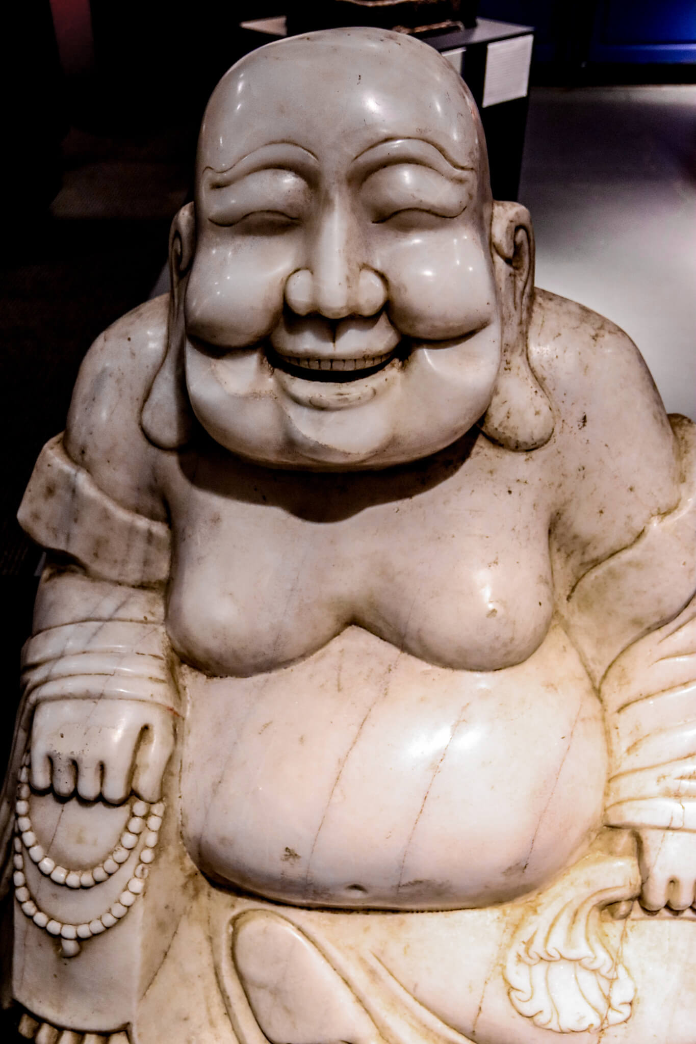 Back to the living, I walked my way through centuries of history among more than half a dozen different civilizations with exhibits that occupy half the floor. Ancient Egypt features sarcophagi, figurines, jewelry, and a pair of 3,000-year-old female mummies who, with mouths agape and crooked teeth still in place, look like they were embalmed at the exact same moment of an excruciating death. Pottery embellished with images of ladies and gentlemen from ancient Greece displays the talents of those who were starting to realistically portray the human form, and a bust of Greek goddess Athena captures what someone in 450 BC thought she must have looked like. Ancient Rome is resurrected via its mosaics and a 50’-long timeline displaying bronze, silver, and gold coins from just about every Roman emperor, accompanied by text detailing their escapades and triumphs. Long before Columbus opened up the New World to Europeans, pre-Hispanic Americans were creating flashy golden jewelry and shrinking heads, both of which are on view. Rounding out the international scene, masks from Ghana and a leopard statue from Nigeria compose part of the African section, and a collection of marble Buddhas, including one particularly plump, jolly chap with enormous ears and saggy man breasts, enliven the Asian collection.