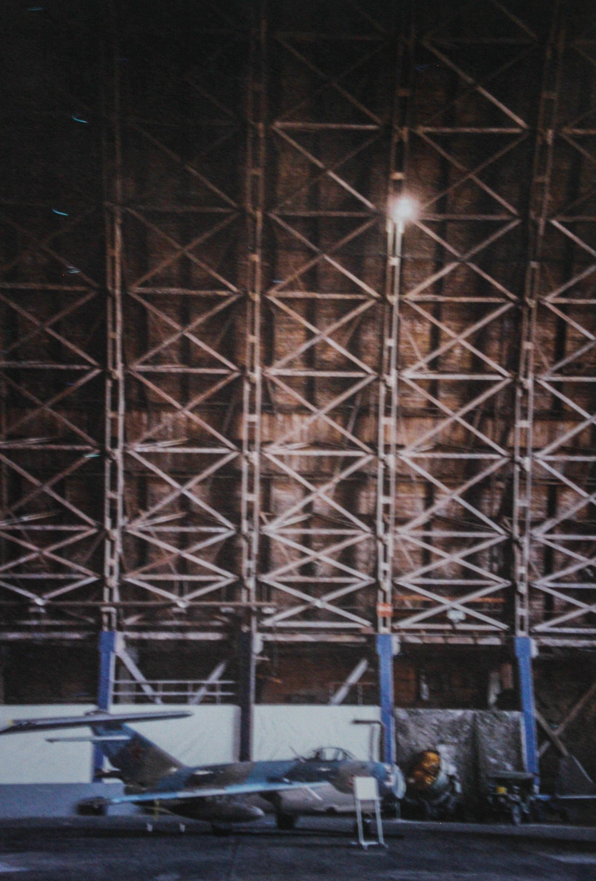 As interesting as all that was, I found the museum’s real attraction to be the hangar itself. This architectural marvel holds the record as the world’s largest wooden building, with a lattice-like support system and catwalks far above my head. The doors to the hangar were opened when I arrived, but “doors” seemed an inadequate word for them: They’re 120 feet high, divided into six sections, each weighing 30 tons, and operate on railroad tracks across a span of 220 feet. Constructed of wood (steel was scarce during the war), the hangar’s dimensions overwhelm any tiny human who enters it: 1,072 feet long, 296 feet wide, and 192 feet high (that’s 15 stories!), for a total area of more than seven acres. Nine blimps could have fit inside it. Six regulation football games could be played simultaneously within it.
