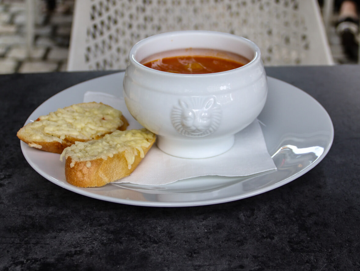 Try This: Begin with a traditional Belgian dish—tasty tomato soup with meatballs, accompanied by a couple of slices of crusty bread topped with melted cheese. For your main course, the baked salmon fillet is perfectly on point, served with mashed potatoes and a bountiful variety of vegetables—broccoli, carrots, green beans, mushrooms, peppers, and zucchini. Sample the Belgian-made VAL Orange soft drink, made with natural mineral water. Top it all off with a trio of the homemade specialties—tiramisu, chocolate mousse, and crème brûlée.
