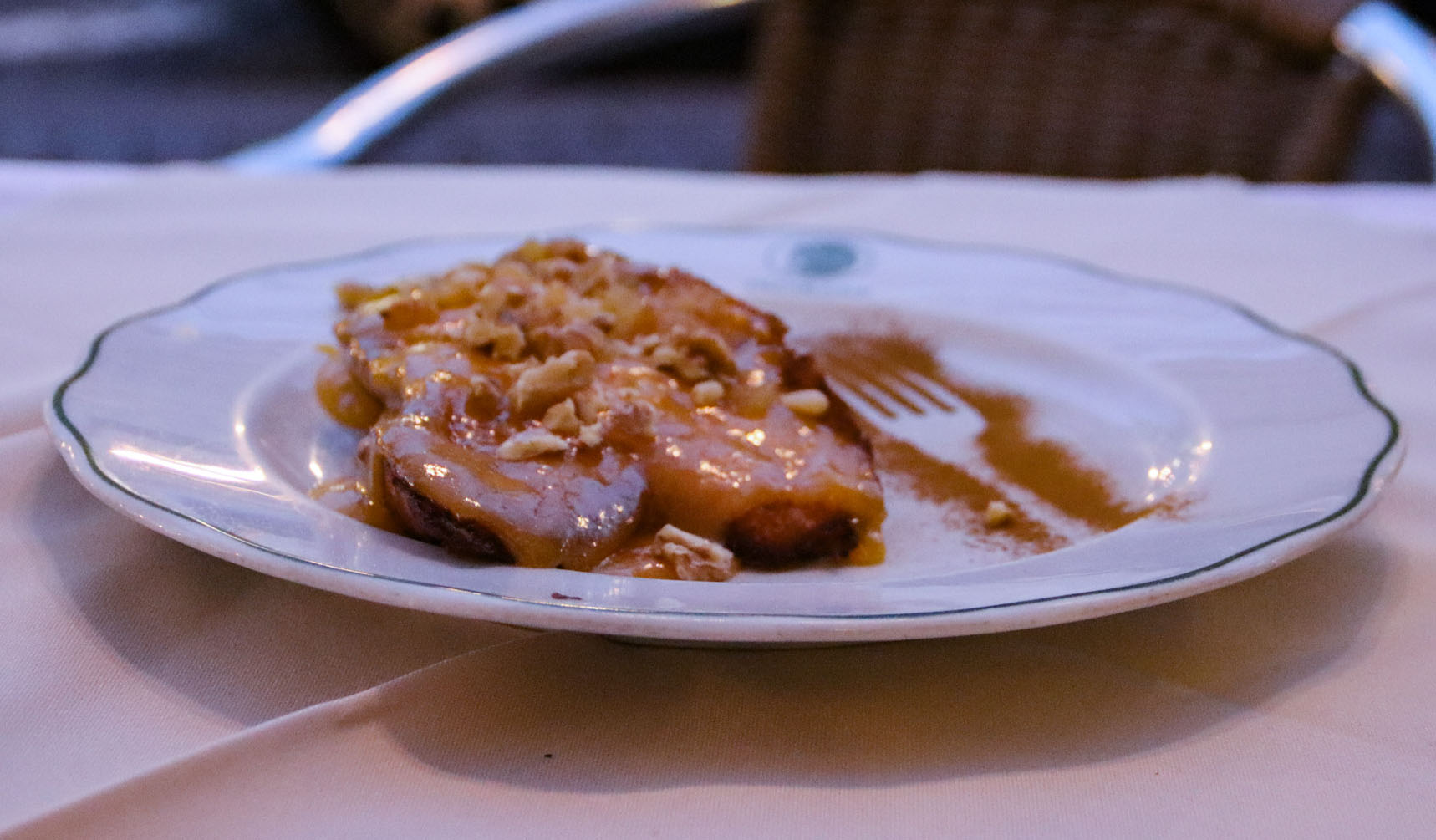 Try This: Portuguese cheese is terrific, so start with the Portuguese tapas—two generous wedges of different cheeses, accompanied by red grapes, crackers, and a sweet jam. For your main course, order up the rump steak slices cooked to your preference, served with garlic sauce, sautéed spinach, and jacket potatoes. For dessert, I selected a Guarany specialty that sounded more like breakfast but was a deliciously sweet way to end my meal: french toast fried in a mixture of eggs, cinnamon, nuts, and butter. It’s accompanied by a glass of Graham’s Tawny port wine.