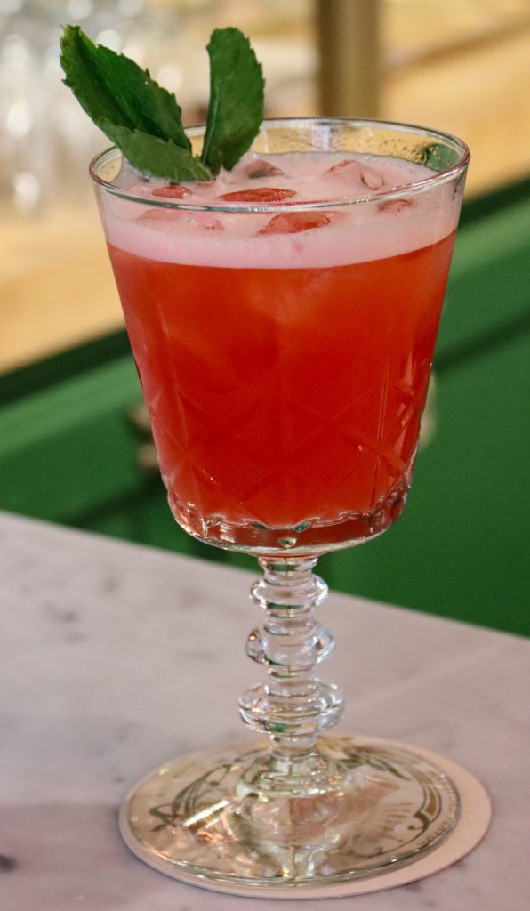 Nestled in the middle of the brick-paved pedestrian-only Pratt Street in downtown Hartford in a building from 1918 with a brick façade featuring subtle geometric patterns in cream and light gold, and carved brackets that support a heavy, richly molded classical cornice, the parlour presents an alluring storefront, with floor-to-ceiling windows, carefully sculpted corkscrew shrubs in planters, and my favorite shade of green in the paint. Its address, 54 Pratt Street, enabled it to use the “54” logo of New York’s legendary disco, and the “u” in “Parlour” lends an Old World nod.