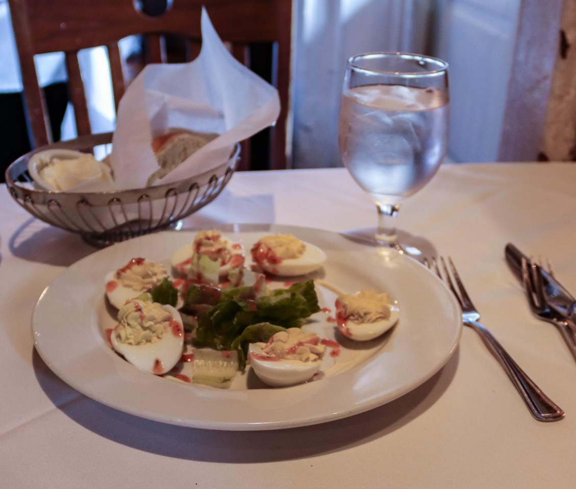 Try This: You’ll definitely want to start your dinner with the trio of deviled eggs, halved and stuffed with Dijon and chive filling. Then enjoy the grilled Atlantic salmon with white-wine lemon butter, served with sautéed spinach and deliciously creamy mashed potatoes.