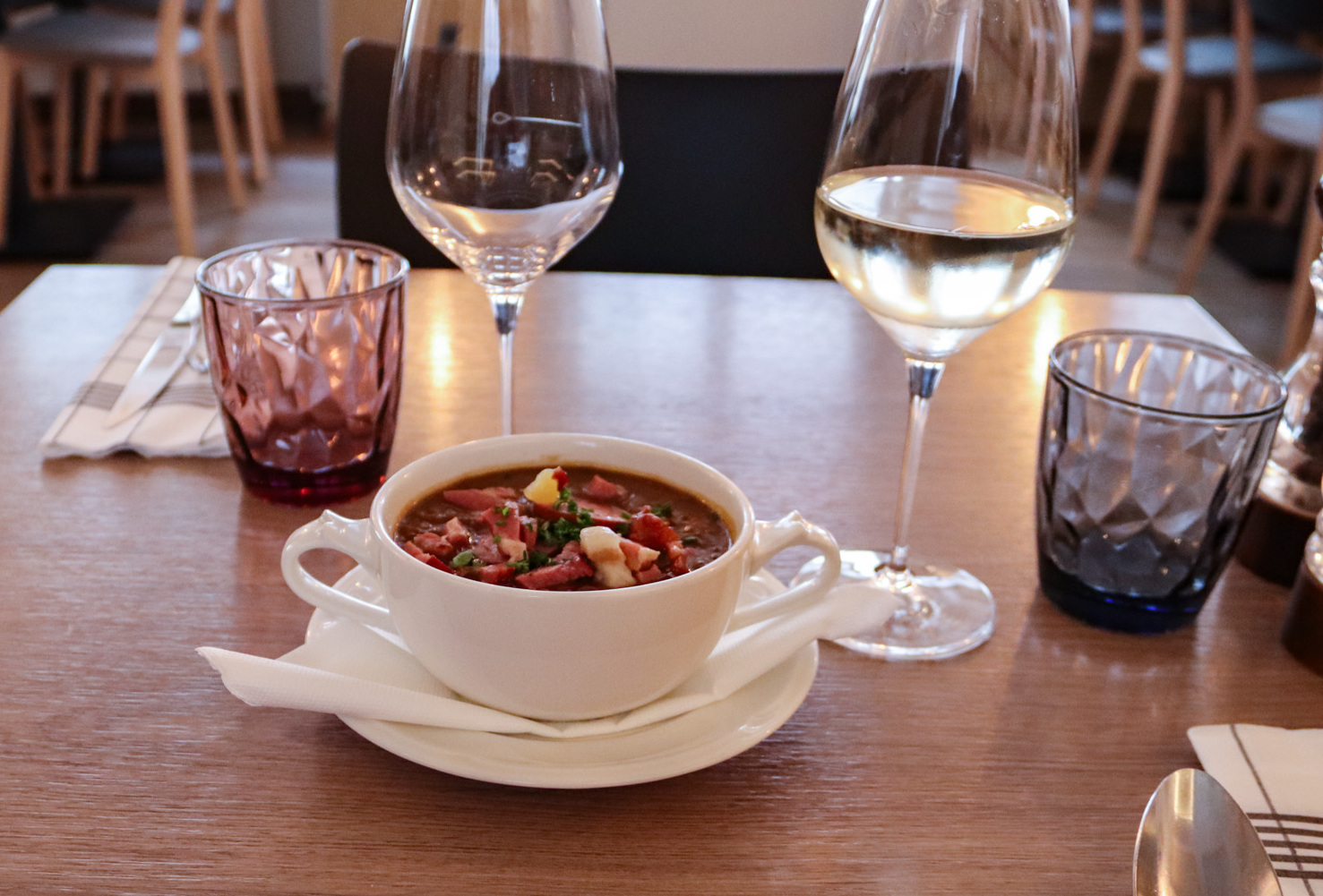 I was here to sample local cuisine and Luxembourg specialties, and the friendly and helpful staff walked me through some of their suggestions, a few a bit more daring than the others. Those suggestions, combined with their flawless service and the general ambience, composed a very memorable meal. With seating for more than 80 people spread over two floors, you might want to make a reservation: By the time I left, there was no availability, the entire restaurant packed with very happy customers.