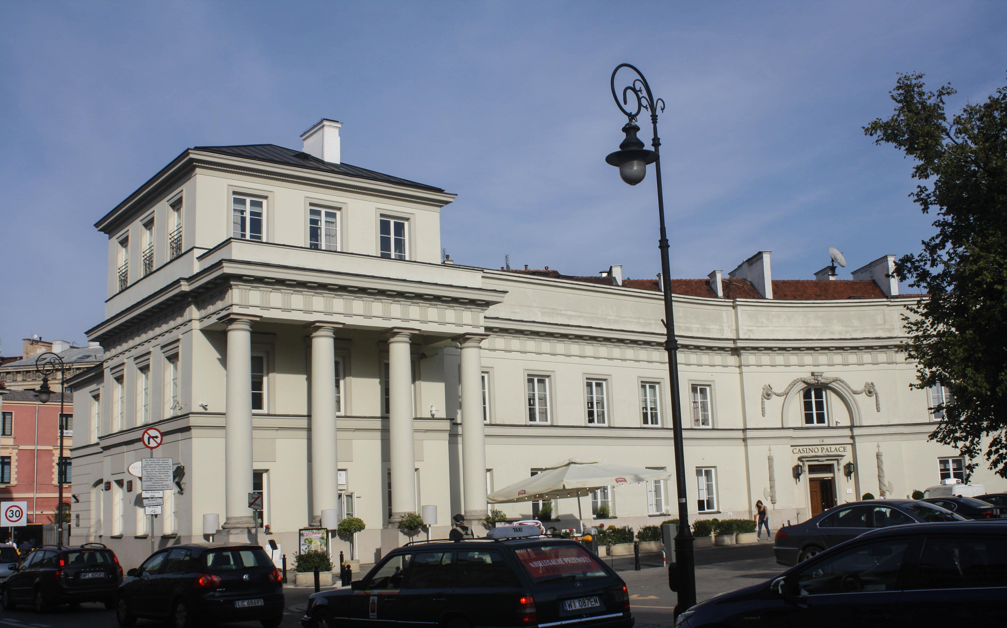 The crescent-shaped hotel with two wings and a central entrance adorned with four Corinthian columns supporting a sculptural pediment takes up the entire block. Fronted by a trimmed lawn and bookended by the café and the Italian restaurant, Hotel Bellotto presents a handsome appearance. Originally constructed in the 16th century as the palace for Polish primates (the chief bishops or archbishops), Hotel Bellotto has experienced a tumultuous history. Destroyed during the Swedish invasion in the mid-1600s, the palace was rebuilt with baroque flourishes, only to be destroyed again by invading Saxons, Vlachs, and Cossaks in 1704. Rebuilt a second time, the palace was expanded and carried on until the first half of the 18th century, when it was demolished and rebuilt in the rococo style. A few decades later, it underwent another general reconstruction, which saw the addition of the wings with pavilions and the pediment. Then came World War II and yet another catastrophe: The palace was destroyed during the September Campaign in 1939, when Poland was invaded from all sides. It was rebuilt after the war and served as a branch registry office, where many marriages were celebrated, before being converted into a hotel and named after Bernardo Bellotto, often referred to as Canaletto (not to be confused with his uncle and teacher, who was also called Canaletto).