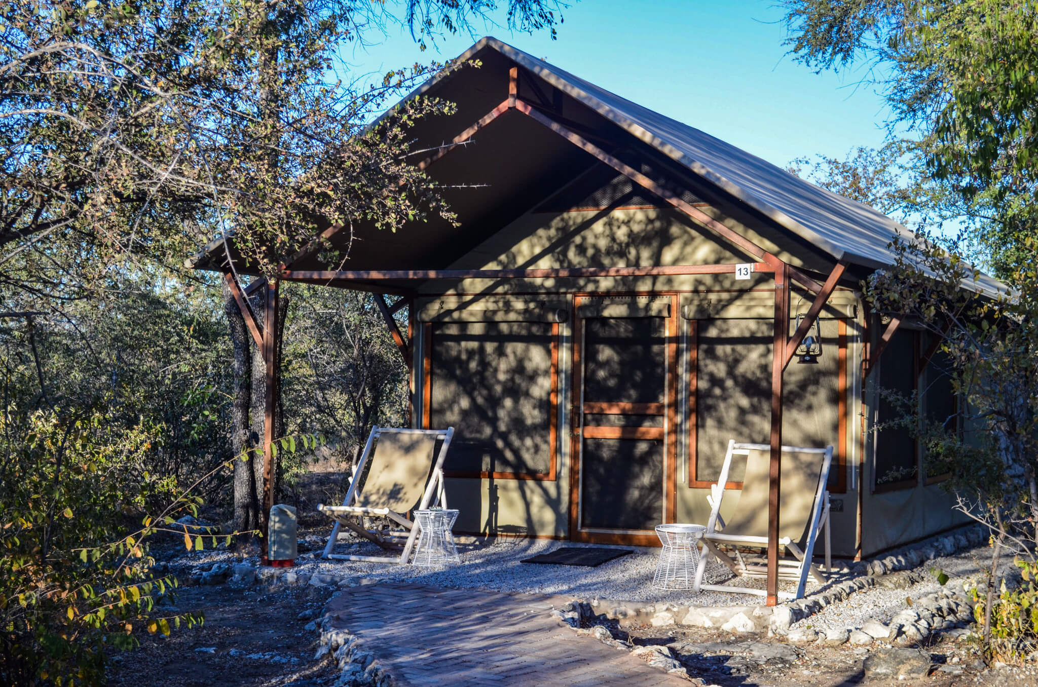 With just a few minutes to spare, I exited the park and headed a few miles east to Mushara Bush Camp, my accommodations for two nights. I checked in at the main Bush Camp House, a large, open-air, thatched structure that has a true bush camp feel to it.