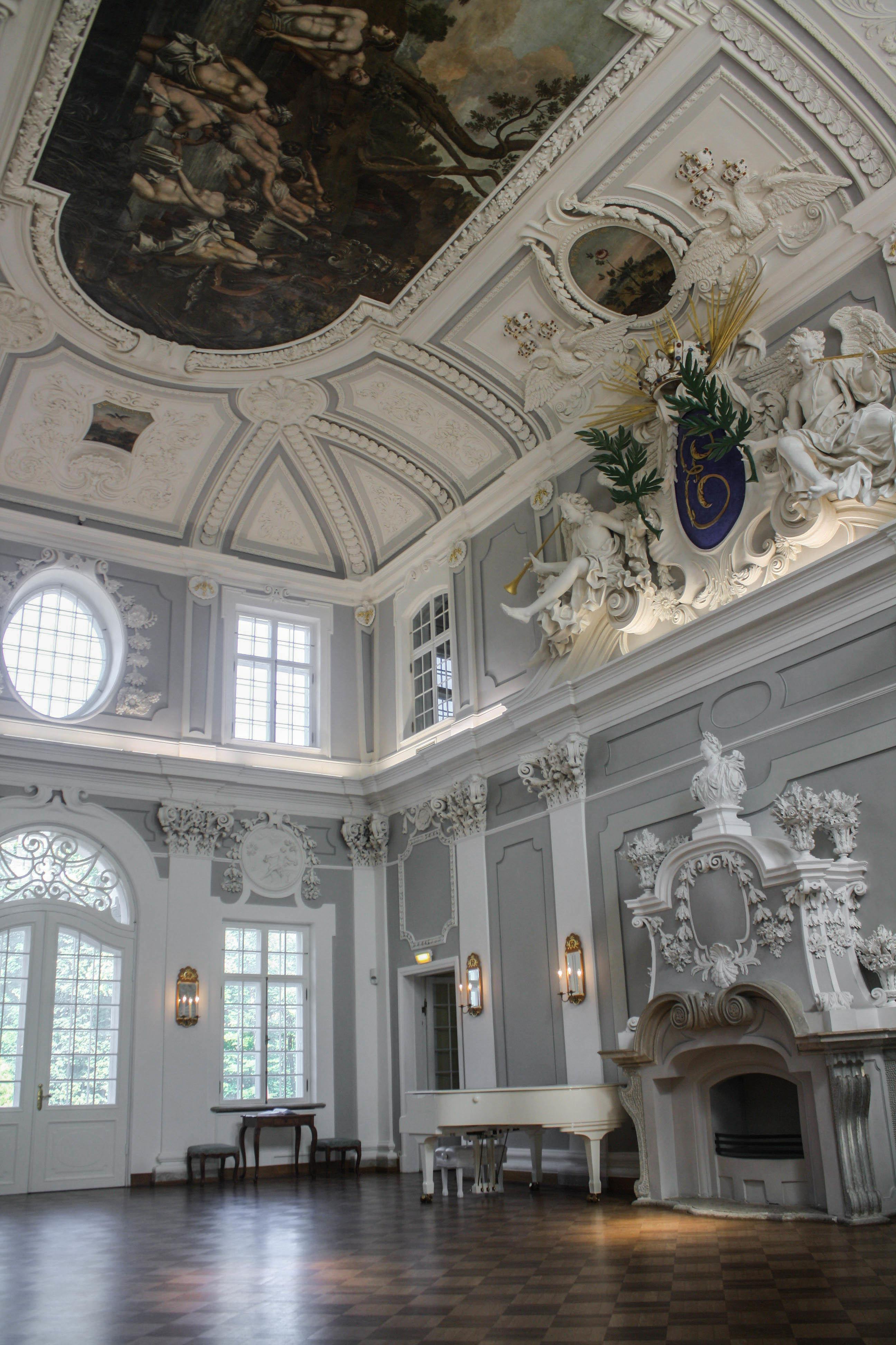 The palace provides a dramatic backdrop to all this, a grand Baroque structure painted white, cream, and deep orange, with a green roof. Peter the Great recruited craftsmen from all over Europe to construct this dignified palace. Although completed in 1718, further improvements to the structure were made later on, including the fantastic ceiling fresco based on Ovid’s Metamorphoses and smaller allegorical paintings that were added to the gorgeous Great Hall, a two-story space rich with intricate stucco decoration (from horn-blowing angels to double-headed eagles topped with three crowns), ornate fireplaces, and Peter and Catherine’s monograms on a deep-blue field—it’s widely considered the most beautiful example of the Nordic Baroque style.