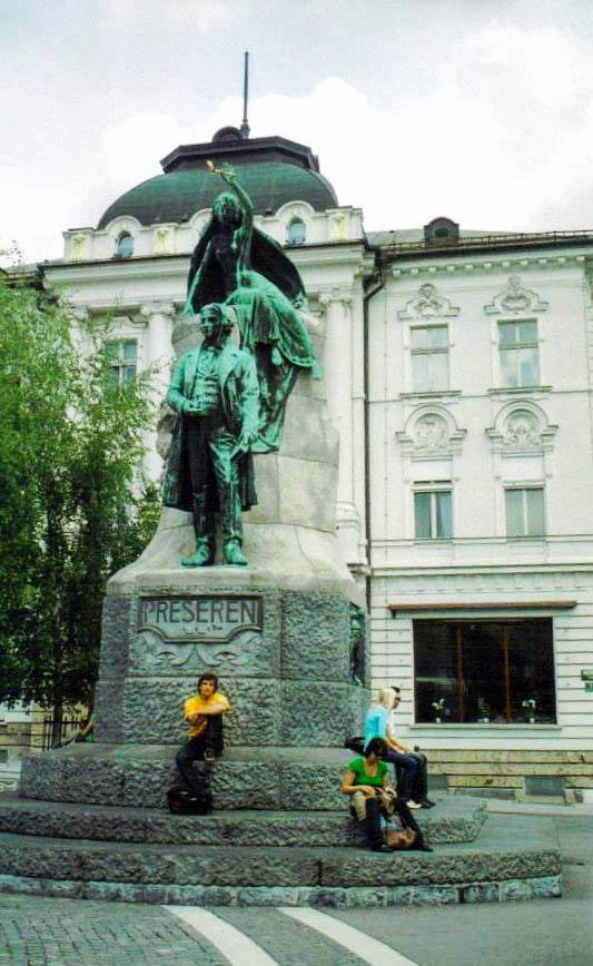 Slovenia’s national poet, France Prešeren, forever immortalized in bronze, is the square’s focal point.