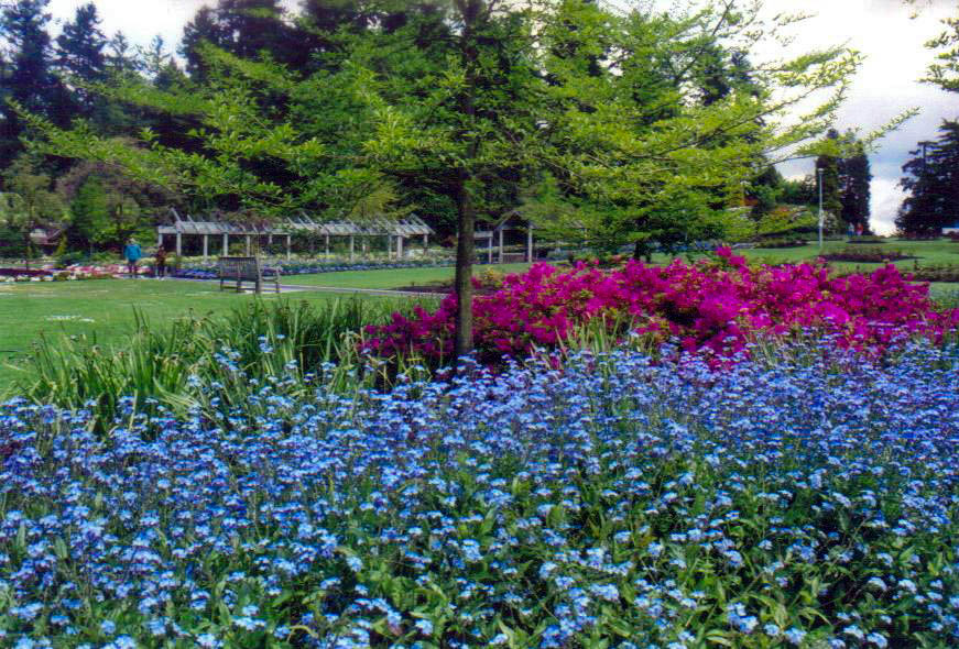 I meandered to the Rose Garden, established way back in 1920. In full bloom, the garden features more than 3,500 rose bushes plus plenty of other annuals and perennials in all shades of blue and violet, yellow and orange, in scattered flower beds. Climbing roses and clematis wrapped themselves all around the West Coast–inspired arbor, and a floral aroma scents the air.