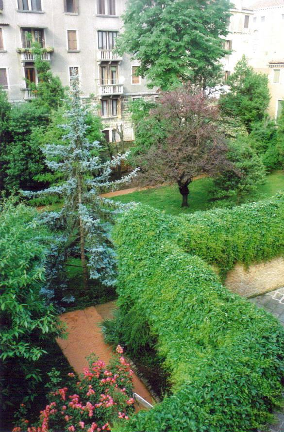 I arrived in Venice via train and, upon leaving the Santa Lucia train station, merged into the crowds. Armed with an extremely detailed map to help me navigate my way, I crossed the Ponte degli Scalzi, one of the biggest and highest bridges in the city, and entered the farrago of Venice’s streets, campi, passages, and canals. Down a quiet alley about five minutes away, I almost missed the entrance to my bed and breakfast—an unobtrusive gate door in a brick wall next to an intercom and a small oval sign bearing the establishment’s name, Ca’ San Rocco. I was buzzed in and followed the stone path onto the covered patio and into the small, cool lobby with a mosaic of Venice in silhouette attached to the front desk. All six bright, spotless bedrooms are decorated in shades of red or blue and feature garden views and roomy bathrooms. The 18th-century furniture complements all the modern conveniences, from electronic blinds controlled by a switch to free WiFi and effective air conditioning. Individually wrapped Tic Tacs nestled in a bowl next to my large, comfortable bed made for a nice little treat when I retired for the evening. Located in the San Polo sestiere, Ca’ San Rocco is just around the corner from the Church of San Rocco and the fantastic Scuola Grande di San Rocco. A five-minute walk in any direction brought me to a handful of outstanding churches, a peaceful campo, the Grand Canal, the Leonardo da Vinci Museum, plenty of shops and restaurants, and the nearest vaporetto stop. Despite its central location, the noise level is low, and you won’t be disturbed by any canal or tourist traffic during a peaceful night. Birds in the garden provide a sweet alarm clock every morning. An outdoor continental breakfast gently coaxed me upstairs to the covered terrace. Lined with flowerboxes, the terrace overlooks a wonderful garden of trees, flowers, shrubs, and herringbone brick paths—an idyllic setting to begin your day over fresh pastries and cereals, yogurt and honey, Nutella on toast, and an impressive selection of teas. Voracious sparrows were not shy about approaching me for their morning meal, and the staff sincerely appreciated my attempts at speaking Italian. Generous serving hours encourage you to linger here in this tranquil setting and plan your activities for the day, whether it’s discovering beautiful churches that few tourists frequent or taking one of the world’s best boat rides. And at Ca’ San Rocco, you won’t be very far from any of them.