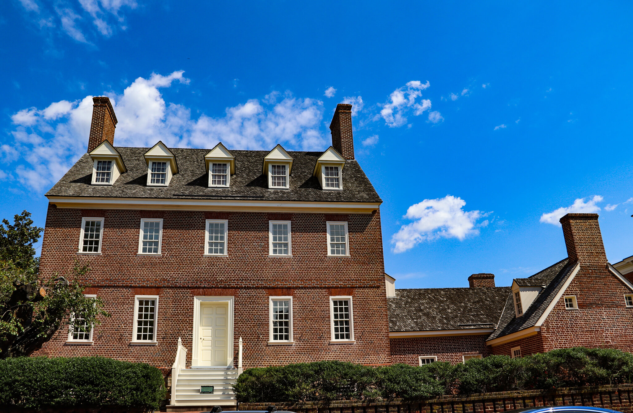 Seemingly every resident of and visitor to Annapolis this day was attending the Navy–Air Force football game, so I was the only person on the tour of the William Paca House and Garden. Paca, a signer of the Declaration of Independence and three-term Maryland governor, designed his mansion largely on his own, quite an impressive accomplishment. I approached the property via the stairway cut into the brick wall surrounding the house and climbed up to the terraces protected from sidewalk pedestrians by rows of hedges. The five-part symmetrical Georgian brick mansion features a two-story central block with a third-floor attic with dormer windows and two end pavilions, connected by two hyphens. Completed in 1765, it received National Historic Landmark status in 1971 following some unfortunate events, as my guide explained.
