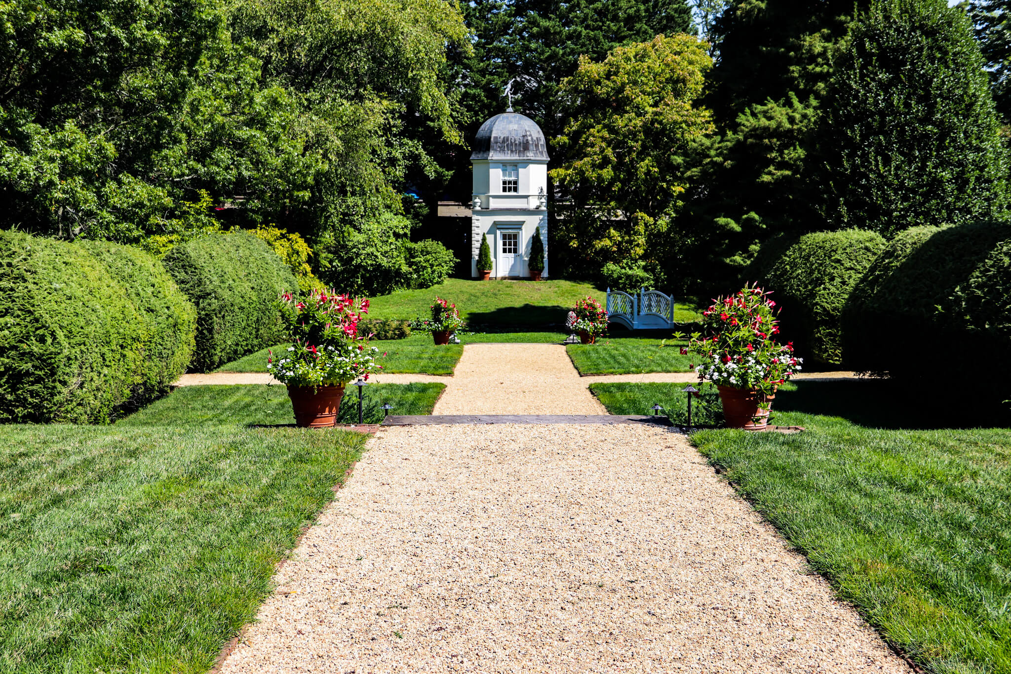 That’s where the tale, and my tour, ended, with an invitation to stroll around the walled garden. Native and heirloom plants flourish here, and a latticework bridge crosses over a fish-shaped pond to a two-story summerhouse. This picturesque retreat from the city’s bustle is ideal for weddings and private events, or just for contemplating what an upper-class household in colonial and revolutionary Annapolis might have been like.