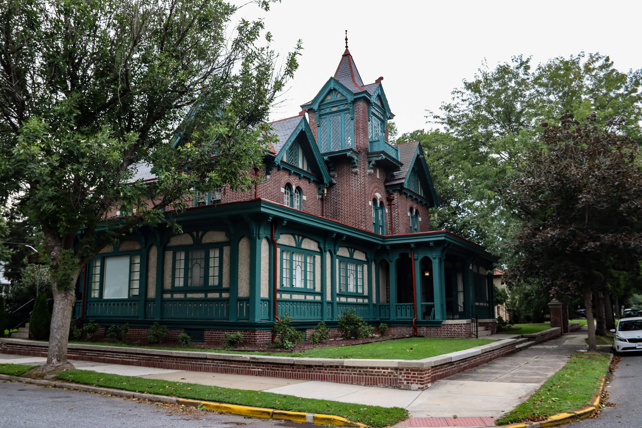 With 482 contributing buildings in the Victorian Dover Historic District, I was excited to aimlessly roam around to appreciate their style and history. Richardson Hall is by far one of the major standouts, exactly why, after it was converted into office space, the new occupants became the very appropriate State Historic Preservation Office and the Delaware Division of Historical and Cultural Affairs. Listed on the National Register of Historic Places in 1979, Richardson Hall was built in 1882 and shared a parallel life to “The Castle.” It, too, was constructed for a wealthy local entrepreneur, Harry A. Richardson, who ran another major cannery in the city and who was also elected to the U.S. Senate, in 1907, after serving as president of the First National Bank. He originally shared his home with his sister-in-law and three African American servants. By the turn of the 20th century, the household expanded to include Richardson’s wife, daughter, son, and daughter-in-law. Eventually, the family home was sold to nearby Wesley College, which used it for classrooms and eventually a dormitory. Threatened by neglect and with unthinkable demolition, the Delaware Division of Historical and Cultural Affairs stepped in and rescued it. A shallow brick staircase leads up to the arched entrance of the three-story building, clad in brick on the lower two levels and wooden fish-scale shingles on the top. A porch with uniform spindlework wraps around three sides, leading to the enclosed rear porch, including around the round corner tower, capped by a conical roof topped with a twisted verdigris-green spire. An open balcony on the second floor occupies the space above the entrance below, while the third floor is adorned with a slender eyebrow window and a sheltered balcony below the gable with an ocular window. Dover and I are grateful the wrecking ball didn’t succeed here.
