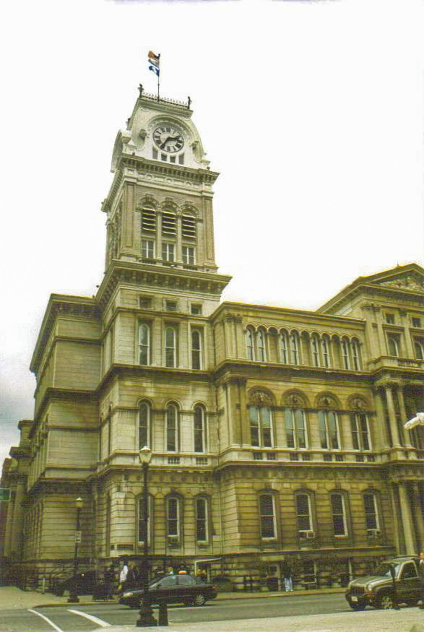 Louisville’s City Hall began with a design competition in 1867. Plans were finalized in 1870, construction began in 1871, and in 1873 City Hall was open for business, totaling a hefty price tag of $464,778. The three-story limestone building with a raised basement is a blend of Italianate and French Second Empire styles, both prominent in post–Civil War civic buildings. There’s a lot to admire here. At the corner rises a beautiful 196’-high, four-faced clock tower with a mansard roof and three-ton bell, completed in 1876 after the original was damaged by fire the year before. There’s a liberal use of columns and pilasters. And you’ll enjoy the search for the abundant use of symbolic ornamentation. Stone livestock carvings along the sides of the building reflect the importance of the city’s stockyards as a major contributor to Louisville’s economic prosperity. And my favorite element is high up over the main entrance, the bas relief in the pediment—an old-fashioned locomotive plowing through the wilderness of Southern flora and a palm tree, bearing the slogan “Progress 1871.” Placed on the National Register of Historic Places in 1976, City Hall remains as impressive today as it was more than a century ago.