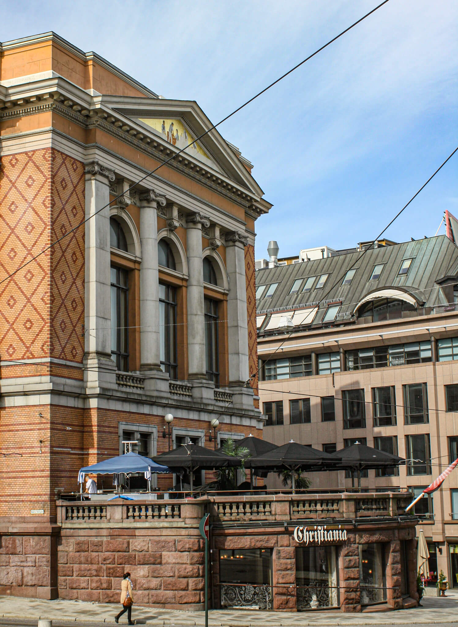 Although it seems like this café/restaurant has been around for decades, Café Christiania opened for business only in 2005. Located across the street from the Norwegian Parliament building, the café occupies the ground floor of the handsome main lodge building of the Norwegian Order of Freemasons. The bow section extends from the building in a stone semicircle with large windows and outdoor seating on the rooftop terrace—prime viewing areas for people-watching in one of Oslo’s liveliest areas. Inside, the café exudes decades of history via its collection of Norwegian country store items from the first 60 years of the 1900s. From mismatched chandeliers to stylish hats, from cookie tins to advertisements for all things Norwegian, the assorted bric-a-brac has the potential to make the place feel a little kitschy, but somehow the medley of curios transcends that, and Café Christiania comes off as elegant. You may want to pop in for the cafe’s proper afternoon tea six days per week, but I settled in for dinner: an appetizer of fresh asparagus with greens and Serano ham, followed by halibut with garlic foam, puréed carrots, potatoes, and sweet onions with a touch of licorice, and a “chocolate nemesis,” served with a sorbet of blood orange and berries, and a raspberry syrup.