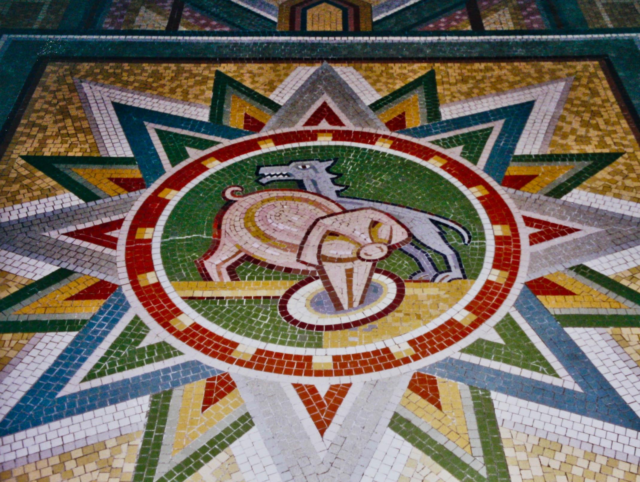 On my way to the lower level, I paused at a statue of St. Anne, where a pile of notes was mounting—prayers and requests from countless pilgrims asking for salvation from whatever ailed them. And if the statue wasn’t enough to get them close to the venerated saint, the basilica houses four of Anne’s relics, including a finger bone and a wrist bone. Downstairs, past the striking replica of Michelangelo’s Pietà, I entered the Immaculate Conception Chapel, large enough to be a church in its own right, which offers visitors a quieter place of reflection than upstairs. Of course, not everything here is so serious. As I sat in one of the pews, I spied some of the 176 small, simple, and colorful mosaic column capitals of butterflies, flowers, and birds. Back upstairs, I strolled down the central aisle, ticking off each of the seven deadly sins represented almost playfully in mosaic on the floor. I found the basilica’s most whimsical feature carved into the end of each pew—a total of 260 different animals and plants, and not just biblical ones. Other than perhaps a Noah’s ark reference, it was the first time I ever saw a giraffe or a penguin in a church.