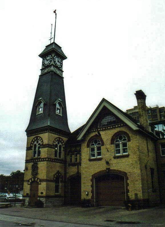 Established by Dutch colonists in the late 17th century, Albany has surprisingly few buildings in the Dutch Colonial Revival style. One of these rarities is the handsome Hook & Ladder #4 firehouse, a fanciful brick structure designed by a local architect and completed in 1912. Its most distinctive feature is the six-step gables, straight out of Amsterdam, but a closer look reveals some details of a more local significance. Two gently arched openings for fire engines straddle the pedestrian entrance, topped with a plaque carved with “AFD 1910” in raised lettering. Alternating bands of brick and olive-green terra cotta flank these entrances, and three of the four heads that serve as the corbels represent important public officials from the time of the firehouse’s construction (the fourth is allegedly the architect himself). Five wrought iron crosses hang above the entrances, and trefoil windows on the second story have been bricked in. Look farther up to see the medallions, the crest with two gargoyles bearing the city’s coat of arms, and the pair of three-foot-tall beavers holding a shield atop the gables.#5 Station 312 (Toronto, Ontario)