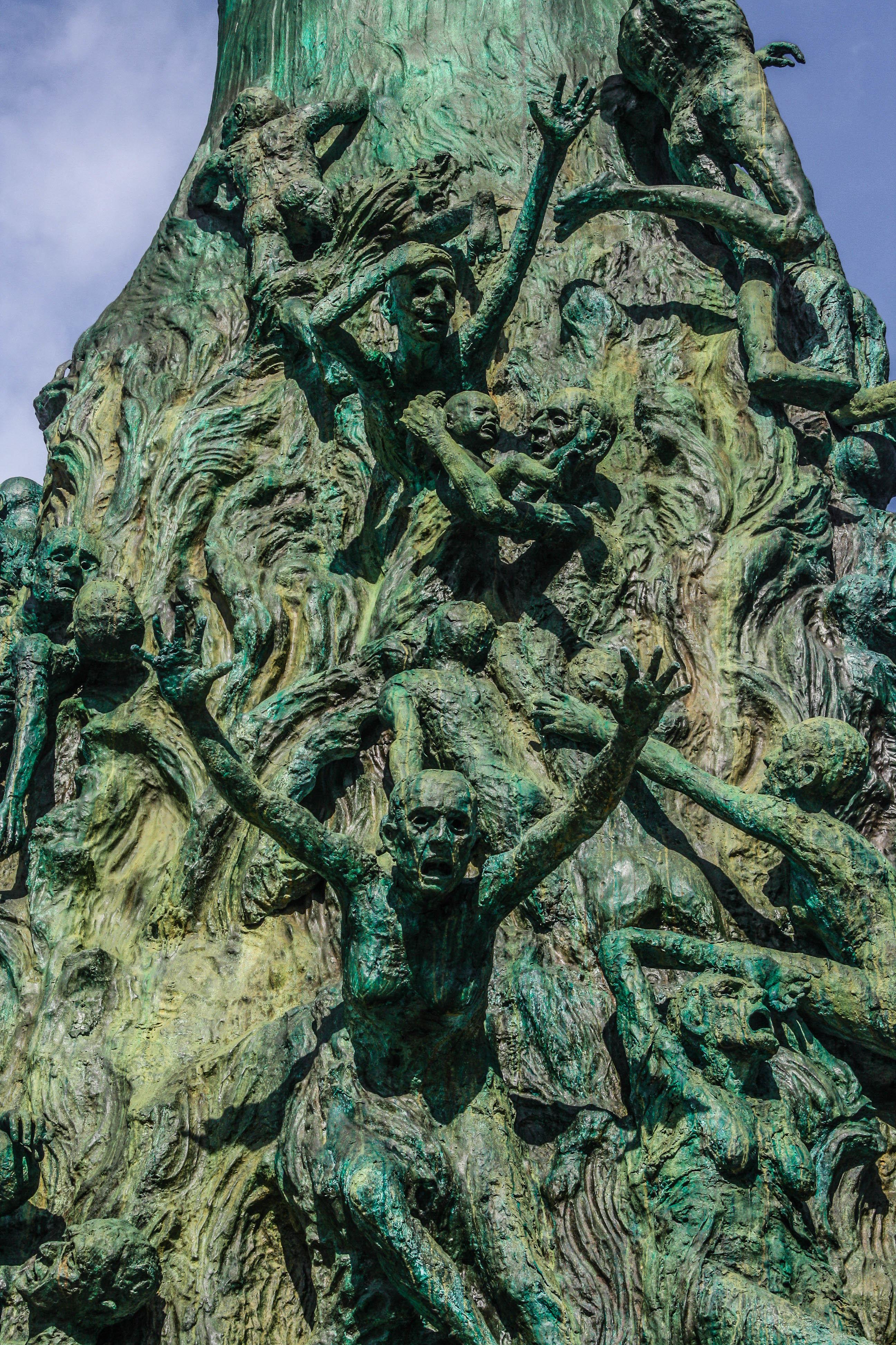 Miami Beach is usually just about fun—sun and beautiful beaches, great restaurants, music and dancing, and those iconic Art Deco hotels in one of the top five historic districts in the United States. But then the Holocaust Memorial delivers a hard dose of reality—a reminder that it’s not only about tans, thongs, and tequila. Conceived by a committee of Holocaust survivors in 1984 and opened in 1990, the memorial pays homage to the six million Jews slaughtered in World War II. Under a wooden arbor with white bougainvillea vines, supported by Jerusalem stone columns, I walked through the semicircular colonnade, looking at disturbing photos etched into the black granite slabs beside me—pictures of Jews as they were forcibly marched away from their homes as the flagitious Nazis scoured Europe in their relentless attempt to extirpate them, dangerously underweight figures donning the infamous striped pajamas, piles of corpses. The colonnade gives way to an enclosed area with a dome, the center of which is pierced by a yellow Star of David with the word “Jude.” This funneled me into a stone passageway, where the names of the death camps (Buchenwald, Birkenau, Auschwitz, and on and on) are etched into the walls, broken by narrow vertical openings that provide light and glimpses of the water feature outside, a pool 200′ in diameter with water lilies representing the lives that were senselessly lost in the 1930s and 1940s. I emerged from this tunnel and was more than taken aback by the memorial’s defining—and most horrifying—element: Set in the center of a walled circle, a four-story bronze sculpture (now turned a verdigris green) of a forearm and hand rises up from the ground, reaching for the sky. A concentration camp number is tattooed below the wrist. Hundreds of small human figures cover the entire forearm, suffering in unimaginable agony as they cling to each other or reach out for any sort of salvation. You can almost hear their cries for help. Like the Vietnam Veterans Memorial in Washington D.C., this memorial features a black wall with the names of the dead, this time victims of the Nazis. As I circled around the arm, I was continually met by free-standing, life-sized sculptures of naked, emaciated men, women, and children in various stages of agony and desperation, their spines, rib cages, and pelvises clearly defined. Just when you’re about to completely break down and give up on the world’s madness, you’ll find the immortal words of indomitable Holocaust victim Anne Frank etched on one of the walls: “Then in spite of everything, I still believe that people are really good at heart.”