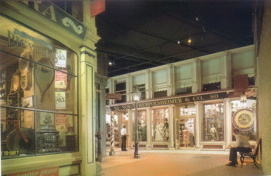 Just a short drive from the Brayton House, my lovely bed and breakfast in the Heritage Hill Historic District, one of the top five historic districts in the United States, I pulled up to what turned out to be a surprisingly interesting museum, exceeding my expectations. A block away from the Gerald R. Ford Presidential Library & Museum, the tremendous building housing the Grand Rapids Public Museum—one of the oldest history museums in the United States, founded in 1854—stands along the banks of the Grand River. Its hodgepodge of exhibits include immigration to Michigan, western Michigan’s wildlife, and a 1928 carousel you can ride. Even more engaging was the display of local history. Gorgeous pieces of furniture made in Grand Rapids when it was the city’s signature industry (akin to Detroit’s auto industry) that earned it the nickname “Furniture City” testify to the talented craftspeople who created pieces of art used for such utilitarian purposes as sitting, eating, and storing your socks or dishes. I also found two clocks in particular that fascinated me: One was the factory time-punch clock that warns “No Loafing”; the other was part of the stunning 1888 City Hall that was sadly demolished in 1969 as a result of misguided urban renewal. My favorite part, however, was the “Streets of Old Grand Rapids” exhibit. Through the entrance by the horse-drawn street car, I walked into a ¾-scale reproduction of the city as it appeared in the 1890s. Along brick-paved streets, I passed by storefronts re-created from actual businesses and buildings. I peered in at the merchandise available in the shops—the print shop, the department store, the drug store, the grocery store—that they would have sold over a century ago. Trained guides sometimes open these businesses and invite you in to learn about, for instance, the funeral parlor or the watch shop. Piped-in street sounds of people’s conversations or a clip-clopping horse add to your immersion into this handsome city of yore.