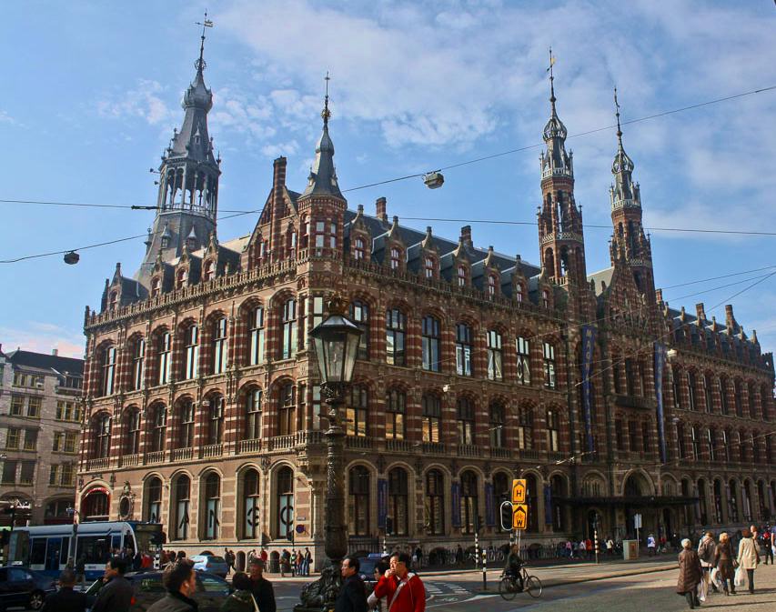 One of the most eye-catching buildings in Amsterdam—so unlike those lovely, slender canal houses—is also one of the largest. The massive former General Post Office faces the rear of both Niuewe Kerk and the Royal Palace, and, completed in 1899, could easily pass as a majestic palace itself. For nearly a century, this building processed the city’s correspondence, and the importance of that role is reflected in this grand structure. The brick exterior features two soaring central towers, with a couple of corner towers thrown in for good measure, and the long, steep mansard roof boasts dozens of highly decorated windows. In December, a three-story Christmas tree in the great hall, surrounded by two levels of arcades, greets those who enter the building in its repurposed role since 1992—the Magna Plaza shopping center.