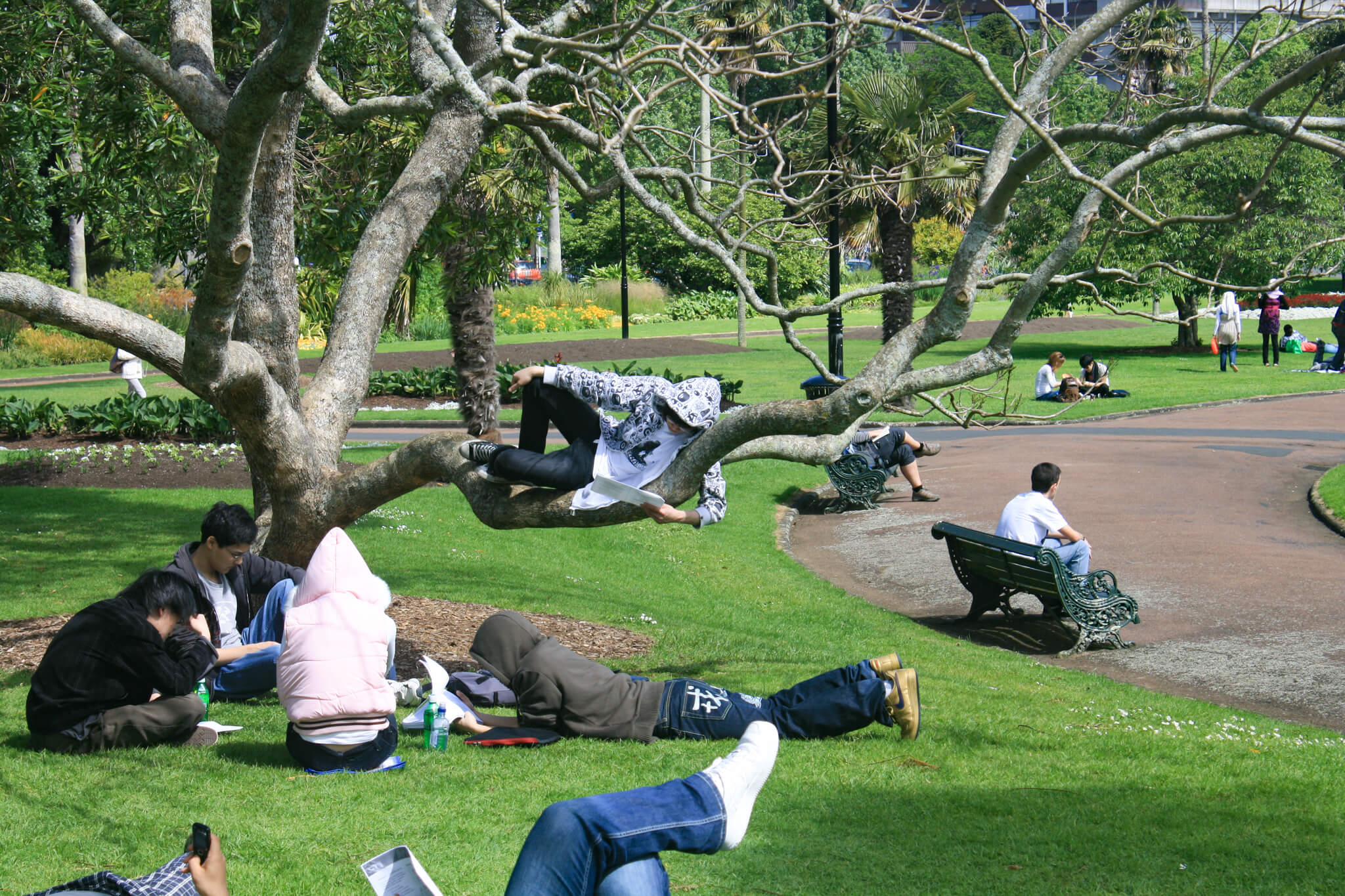 One of Auckland’s great green lungs, Albert Park beckons everyone who wants to relax: office workers from neighboring skyscrapers on their lunch break, students between classes at the adjacent University of Auckland, visitors in search of tranquility. But it didn’t always serve such a peaceful purpose. During the mid-1800s, a military barracks occupied much of the current park’s area, and troops were stationed here until 1871. Ten years later, the park was constructed and has remained a favorite respite of locals and foreigners ever since. I entered the park via Gateway, a sculpture added to the park in 1990. Two columns of basalt boulders rise up precariously to a height of 59’—but it’s misleading. The top half isn’t composed of basalt boulders at all; they’re aluminum replicas, insisted upon by structural engineers who cited the threat of seismic movements as a safety concern. As I strolled around, I found the adorably quaint original park keeper’s cottage, from 1882, and the ornamental fountain with cherubs riding dolphins and blowing horns that spout water. The open landscape affords views of Sky Tower and the frilly clock tower of the university. Throughout the park, beautiful flowers like birds-of-paradise and lavender, pink, and speckled white lupines erupt in beds of seductive colors. More than 80 species of trees provide plenty of shade, and the magnificent tree with low octopus-like branches unintentionally offers beds for limber college students. I appreciated the serenity of this place, especially with the knowledge that history could have turned out very differently: Underneath the park lie tunnels built in 1941 to serve as air raid shelters when World War II was reaching global proportions of darkness.