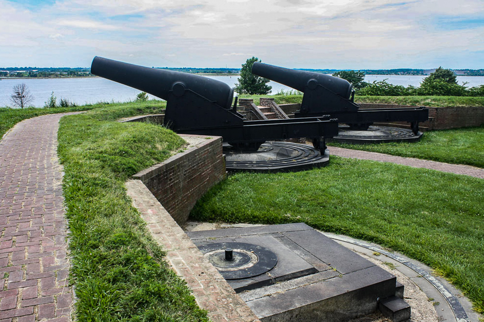 So, what is there to see here? Your visit may start with soldiers in 1800s uniform marching down the herringbone brick path through the sally port of the fort as part of a historical reenactment. You can check out some of the old Civil War prison cells; explore the parade grounds, quarters, and barracks; step inside the exceptionally thick walls of the powder magazine with its barrels of gunpowder; learn how the original cannons were loaded and fired (by mock soldiers in authentic garb); and stand beside those cannons atop the parapet, aimed into the harbor, and imagine the scene from more than two centuries ago that gave birth to those lyrics about the land of the free and home of the brave. As for that 15-star and 15-stripe flag that so inspired Key, the original is still here for viewing. It also started a national tradition of flying any new American flag over Fort McHenry before anywhere else. Although that hasn’t happened since 1959, when Hawaii became the final star in the current flag, if anything changes, you’ll see it here first.