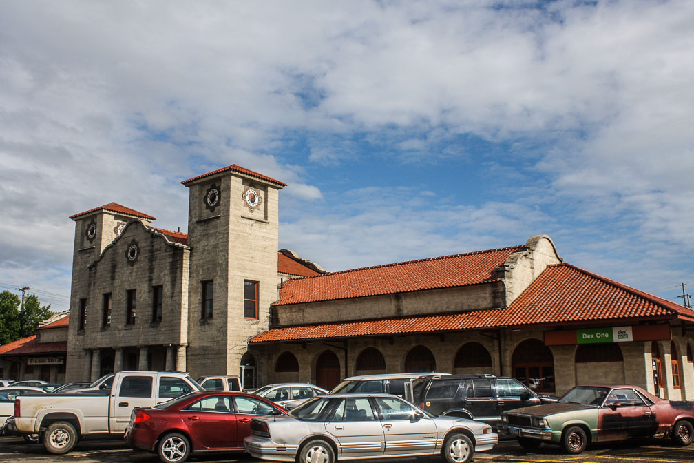 A notable anomaly to the city’s landscape still stands in downtown Bismarck: an old Spanish Mission–style structure—quite uncommon for the northern plains—that remains the city’s most interesting building. The now-defunct Northern Pacific Railroad Depot was completed in 1901 by famed U.S. architect Cass Gilbert. Although Gilbert had designed depots in numerous other styles, this was his first attempt at Mission-style, and his achievement served rail passengers for three-quarters of a century. By 1916, the depot was accommodating two dozen passenger trains daily, but it fell victim to the national trend of declining ridership starting in the 1950s. Two years after the depot was listed on the National Register of Historic Places, the depot ceased operations when Amtrak ran its last train there in 1979, and the Mexican restaurant (quite appropriate, given its setting) that followed closed after a few decades of service. Half a dozen columns support the slightly protruding central portion of this handsome structure, flanked by towers that were originally capped with domes topped by cupolas and finials but were replaced in 1954 by simpler peaked tiled roofs, altering the character a bit to more of a Tuscan campanile. A series of arched windows and entries extend in both directions, capped by red-tile roofs with shaped gable-end walls that project above the roofline. Nine original Northern Pacific logos remain visible on the building’s exterior, reminding you of the age when rails ruled.